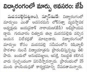 విద్యారంగంలో మార్పు అవసరం: జేపీ